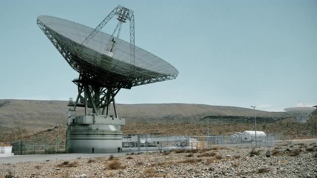 Highly realistic animation of a large satellite adjusting its position.