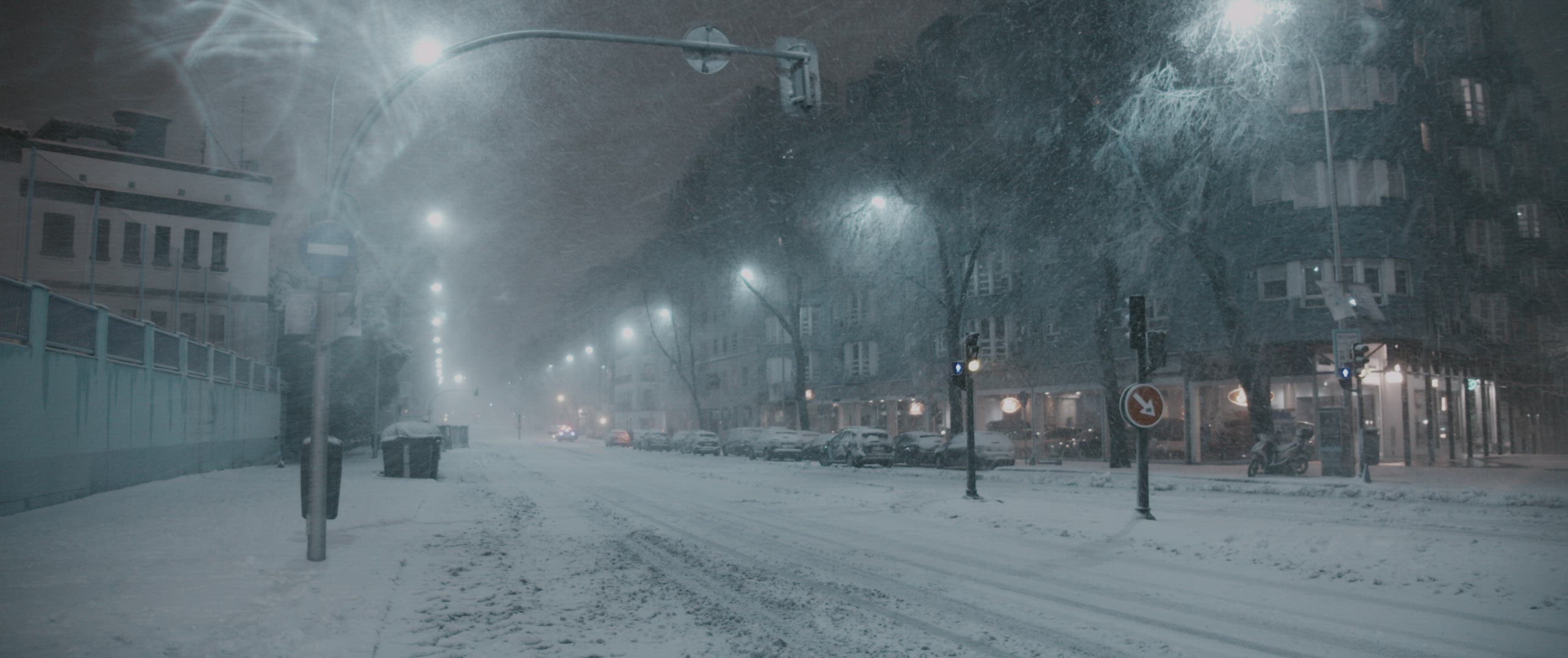 Shot of a blizzard. Snowflakes are seen in the shot.