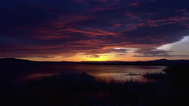 2125904 - Colorful sunset reflecting in water over Utah Lake moving in slow motion