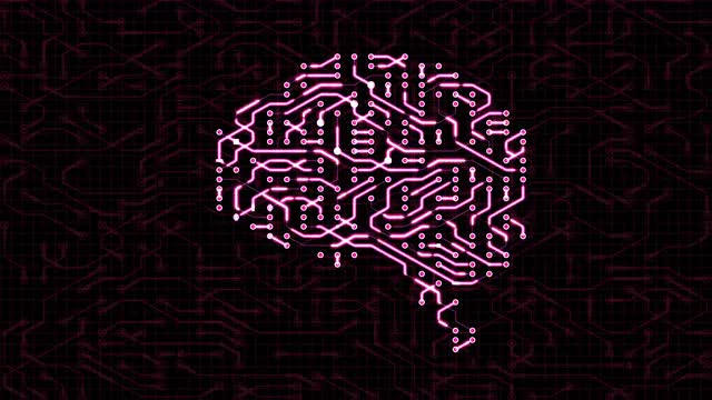 Seamless looping animation of a brain circuit board.