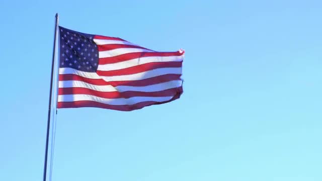 Shot of American flag close up and blowing in the wind.