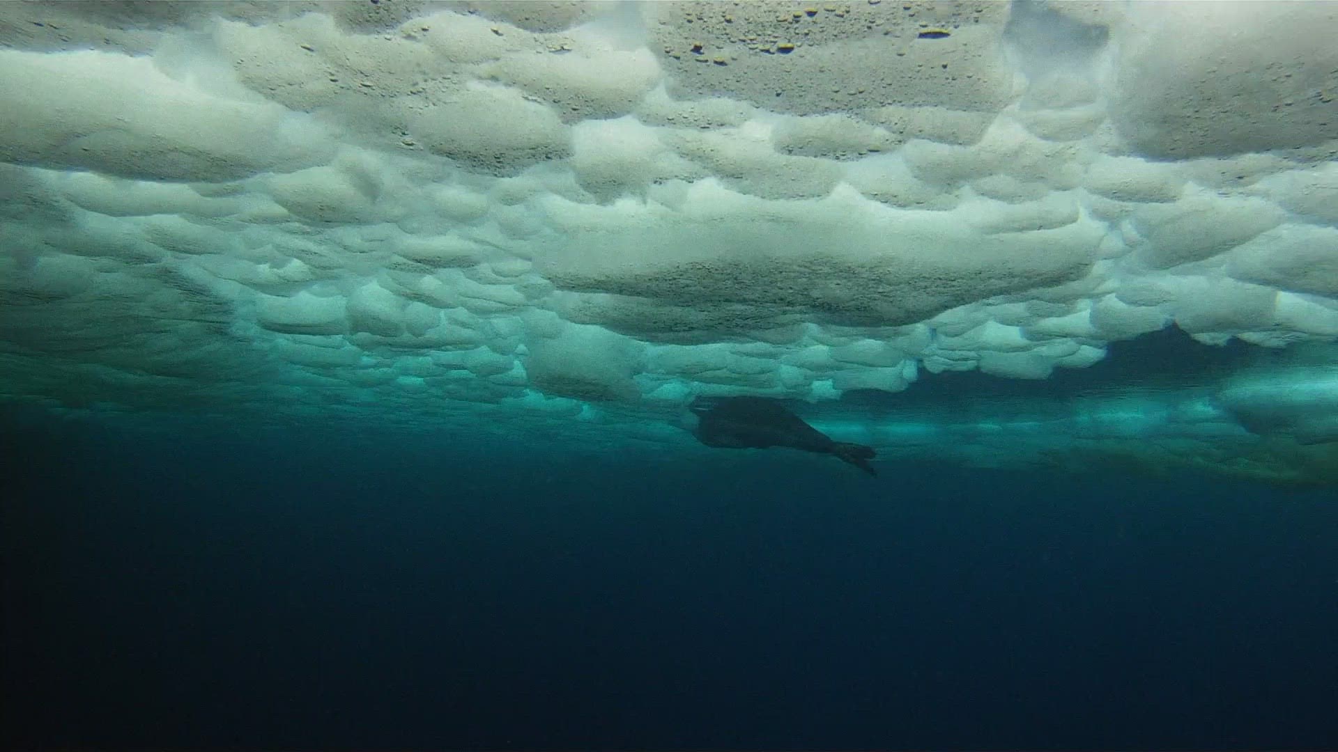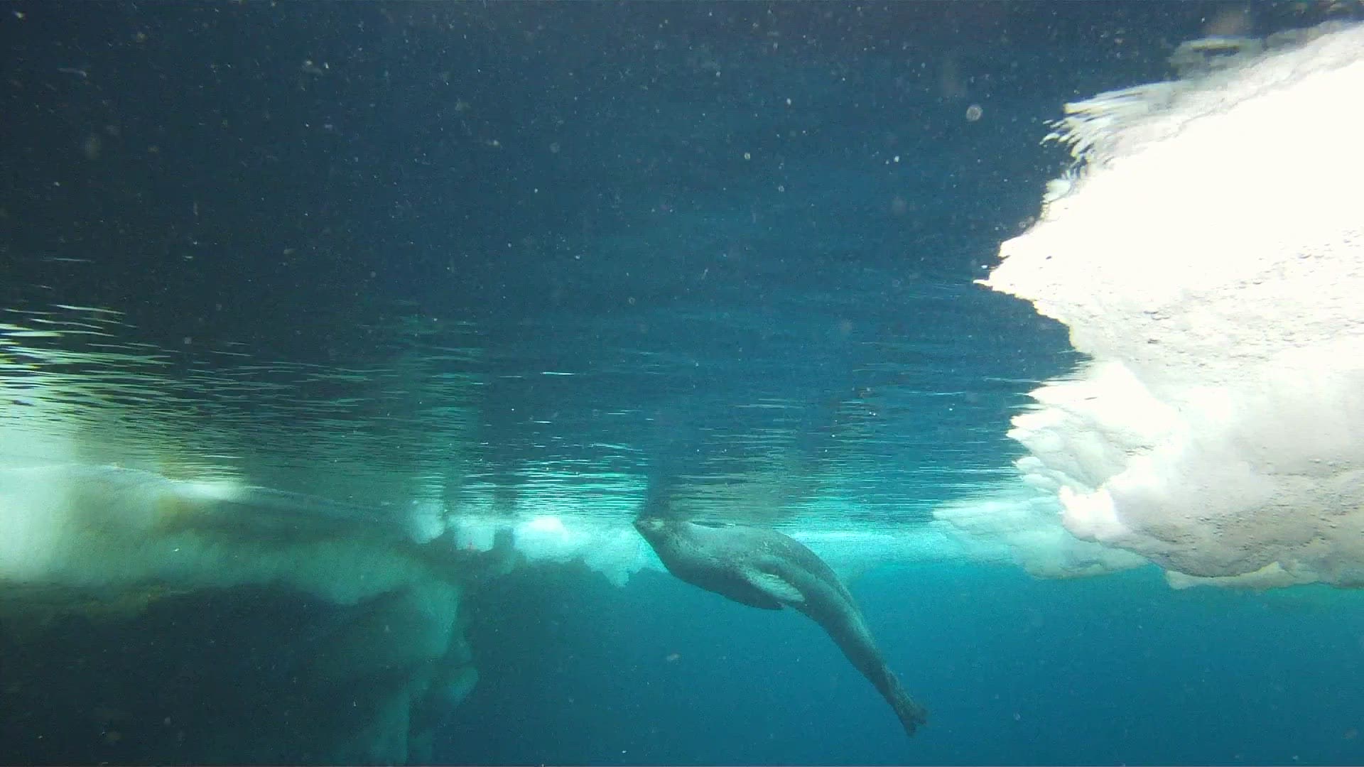 The seal swims up to the camera before swimming away