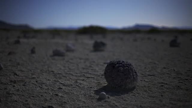 Detail of rocks scattered across desert landscape. Defocused stars can be seen in the background of this time lapse.