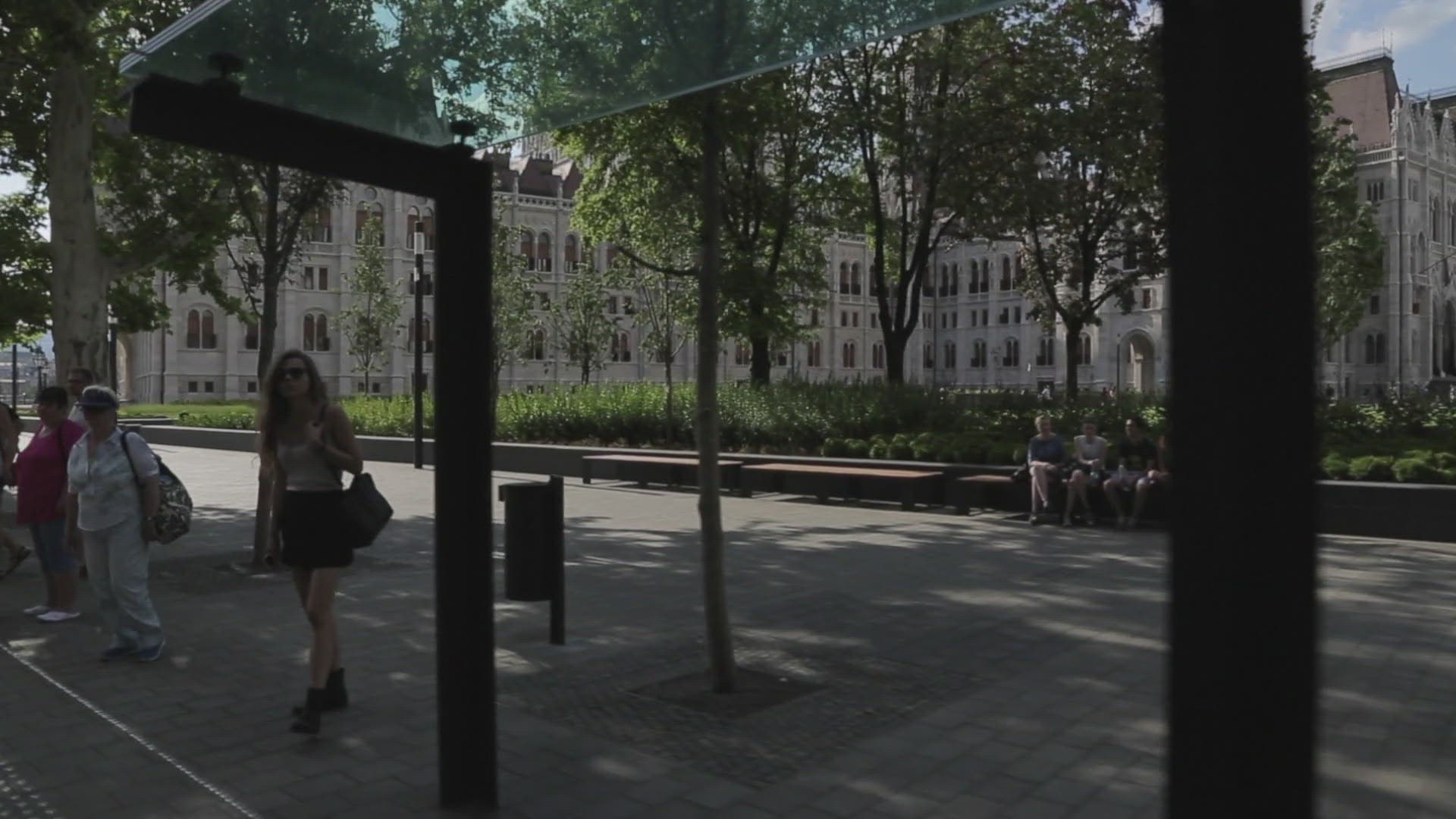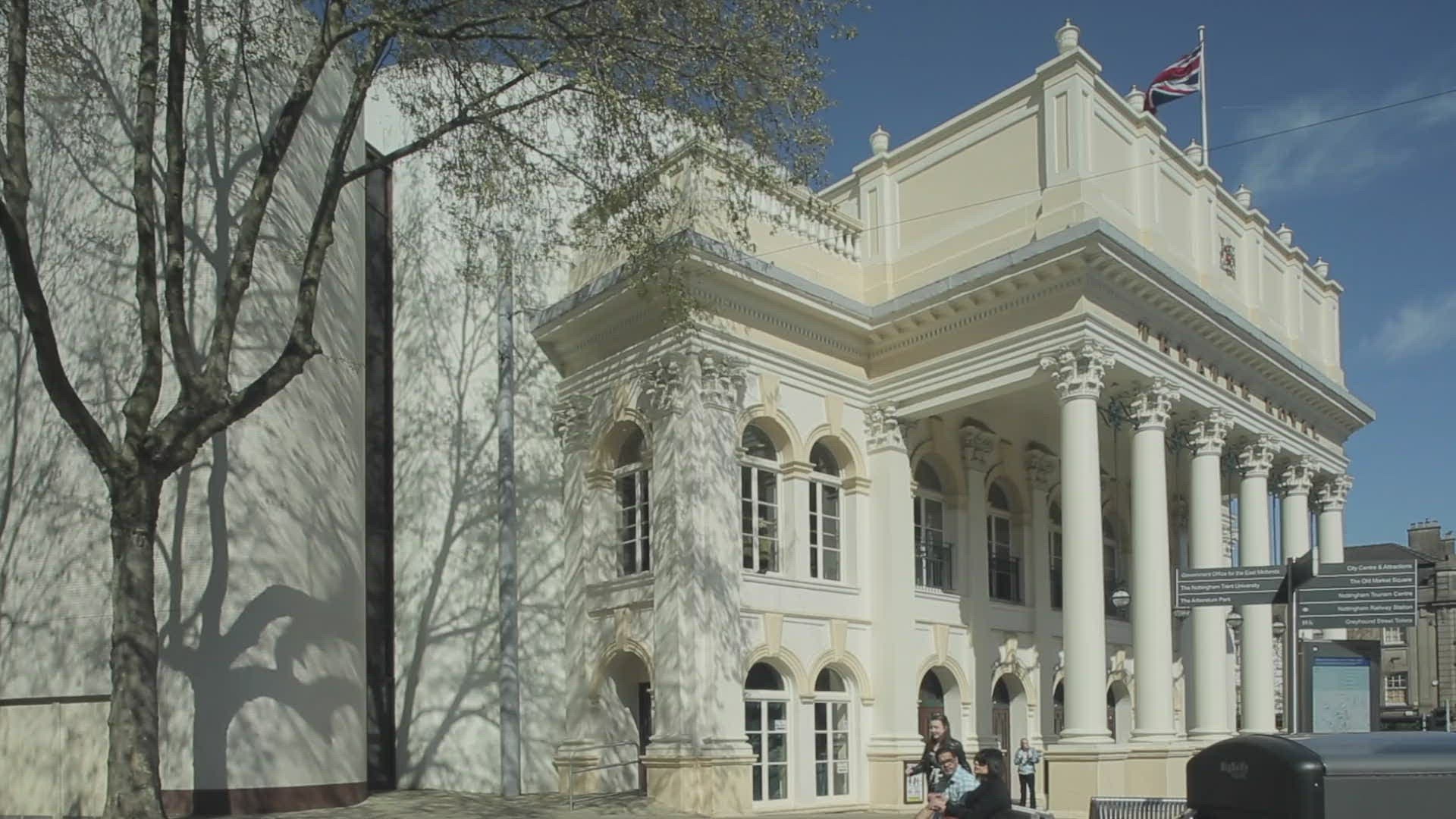 Wide establishing shot of city street at night. Broadcast quality 4K footage.