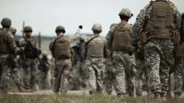 Static shot of soldiers 'boots' walking across field. At Green Beret United States Army Special Forces range.