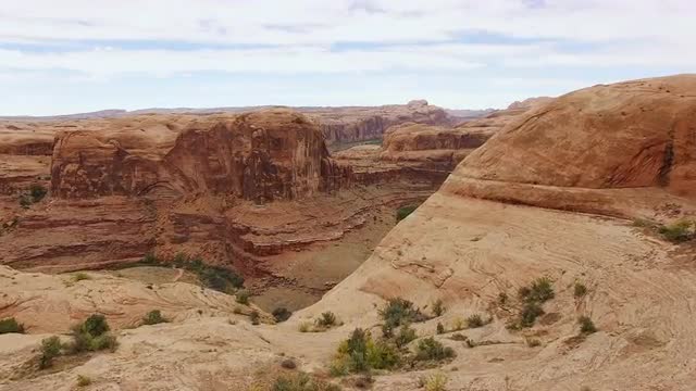 739803 - Right panning drone of red rock in Moab