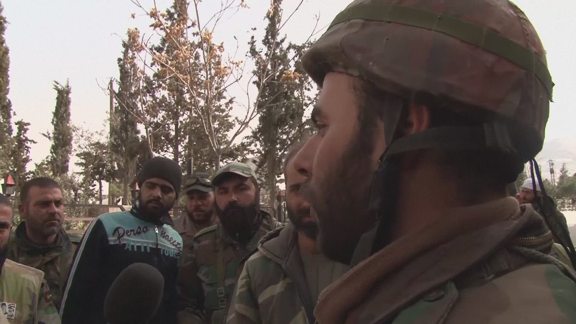 Shot of two soldiers crawling across field for training. Green Beret United States Army Special Forces.