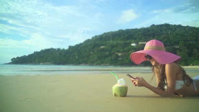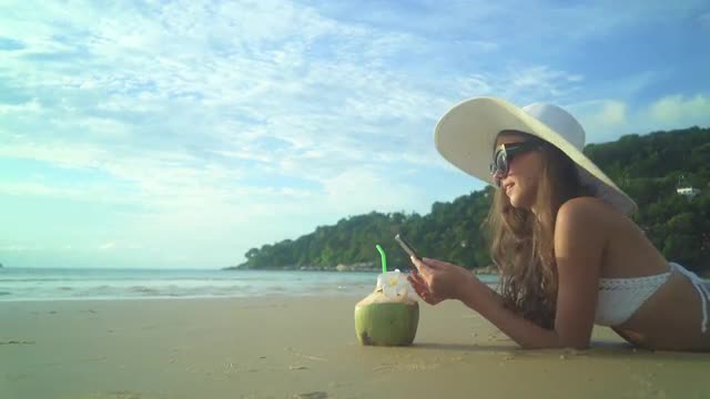 A woman having a sms / text conversation on her phone while riding the escalator. 4K UHD footage.