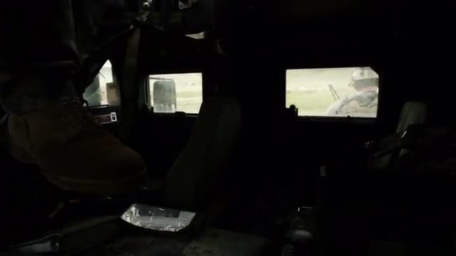 Shot from the inside of a Humvee as a soldier climbs out the top. Green Beret United States Army Special Forces.