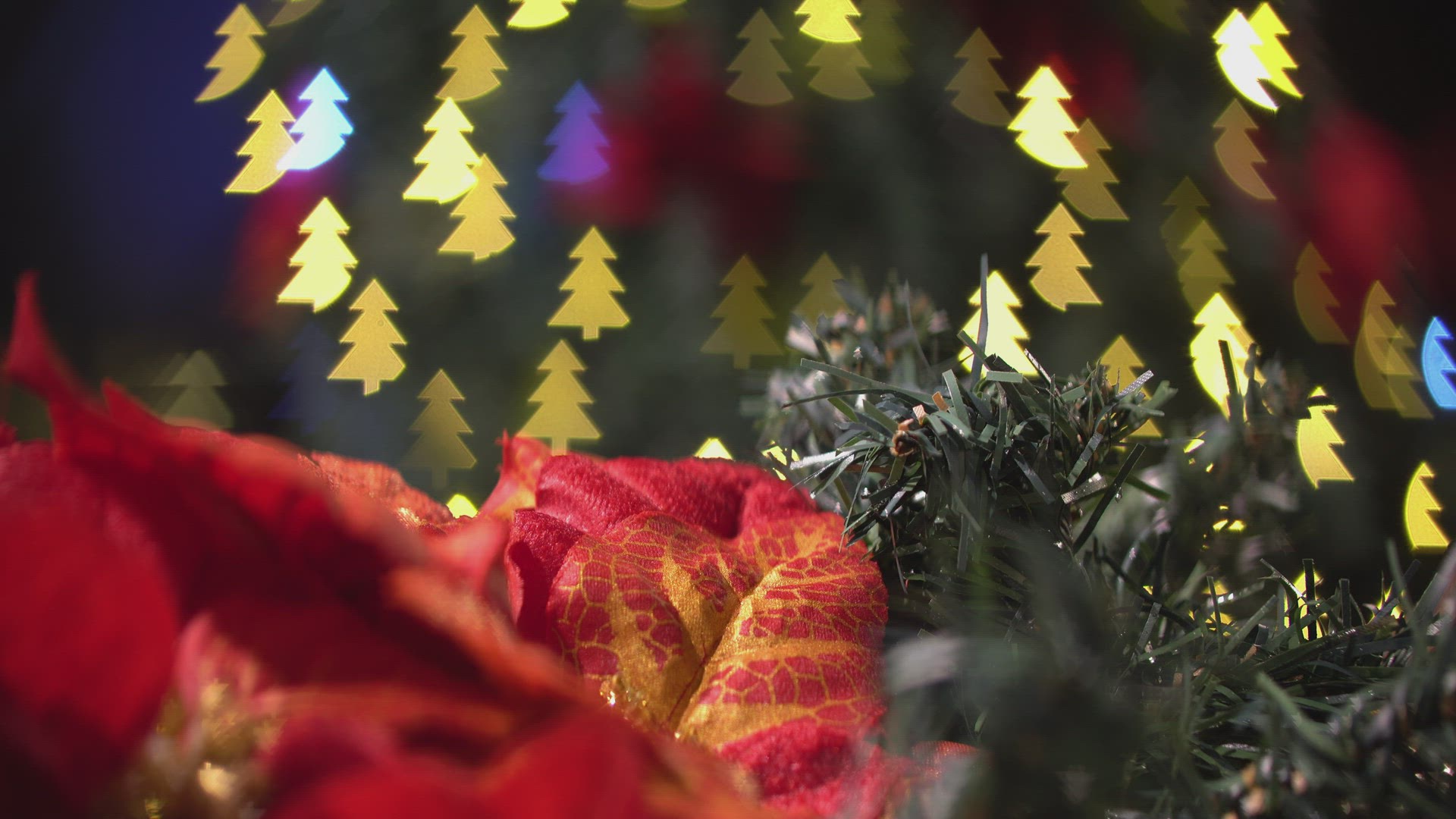 2149563 - Christmas decoration flower and leave with bokeh light
