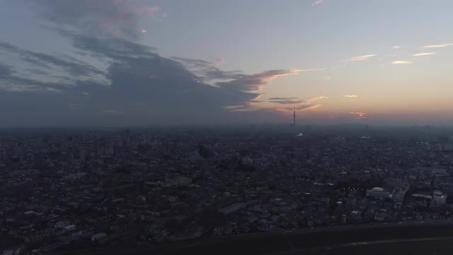 > Aerial view of Tokyo cityscape at sunset, Tokyo, Japan
