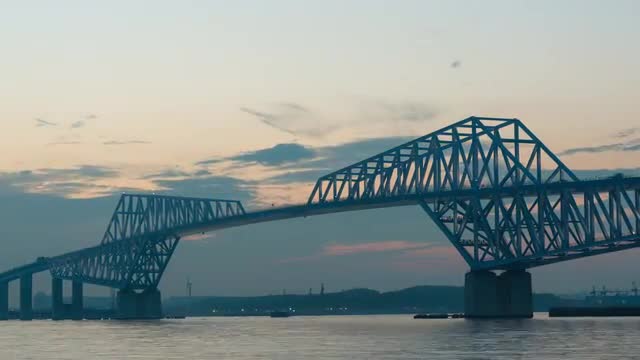 Panning shot sunset to night timelapse view of Tokyo Gate Bridge, Tokyo, Japan