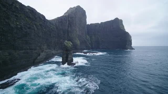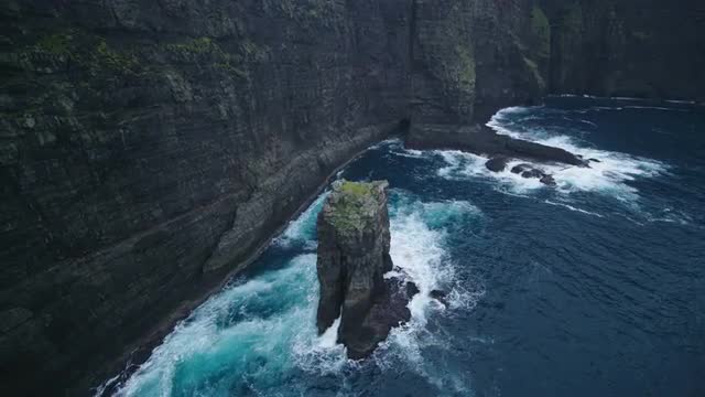 Ocean water hitting the rock on the shore
