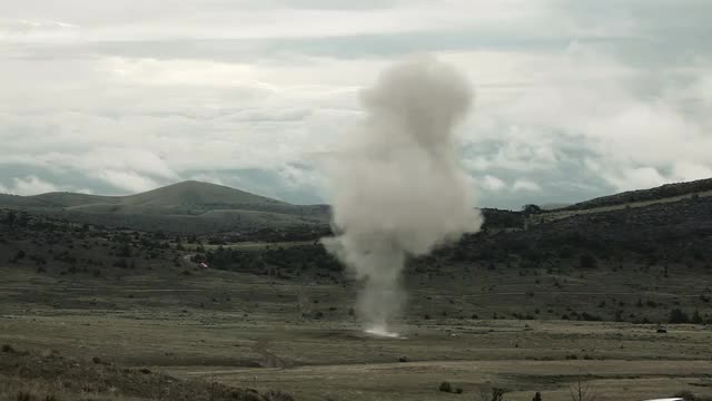 Large explosion with visible shockwave, and smoke drifting off. Green Beret United States Army Special Forces.