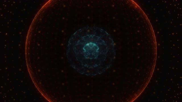 Seamless looping animation of a glitchy sphere with abstract lines and points
