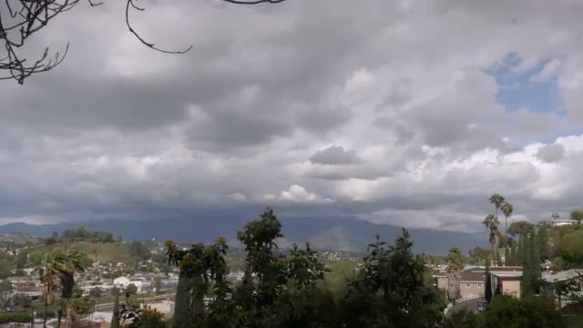 Hollywood sign timelapse with clouds behind it as the frame pushes in