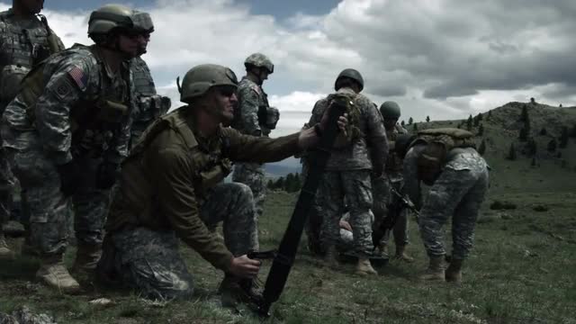 Slow motion shot of soldier firing a mortar with a trigger. Green Beret United States Army Special Forces.