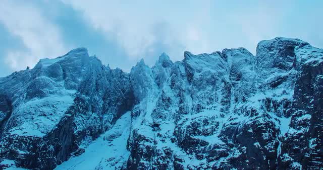 MORE / ROMSDAL, NORWAY – FEBRUARY,2017 : Timelapse of snowy mountain peaks at sunset with clouds moving and light changing in view