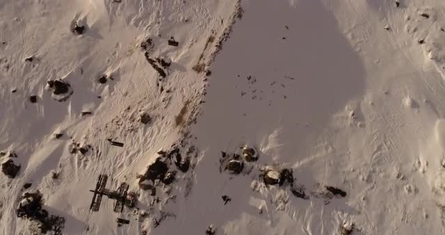 > Aerial shot on ski track on a sunny day with amazing landscape