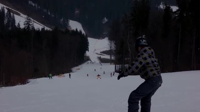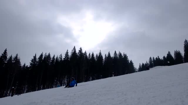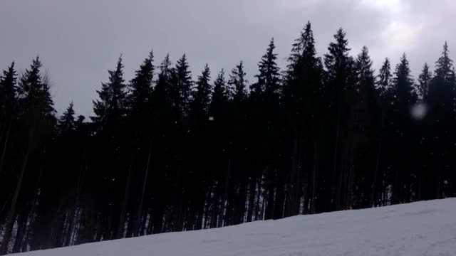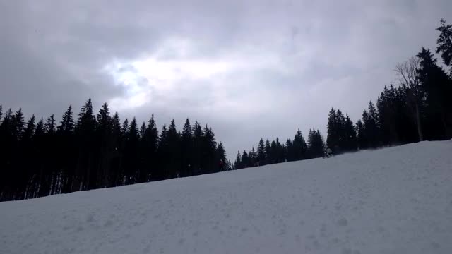 > Slow motion hood shot of caucasion couple right before the cart starts down a steep slope.