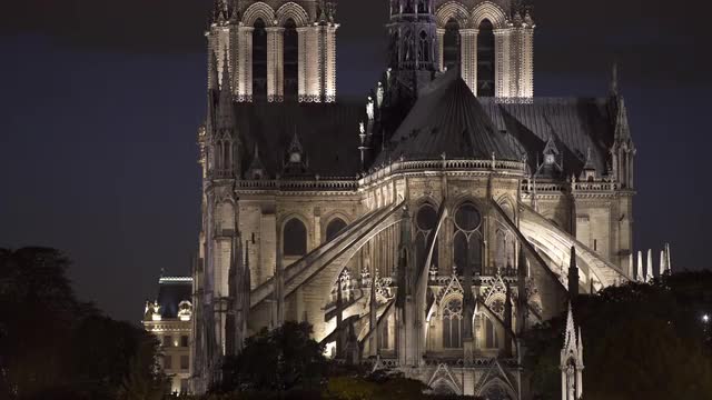 PARIS, FRANCE – SEPTEMBER 2016 : Video shot of Notre Dame at night