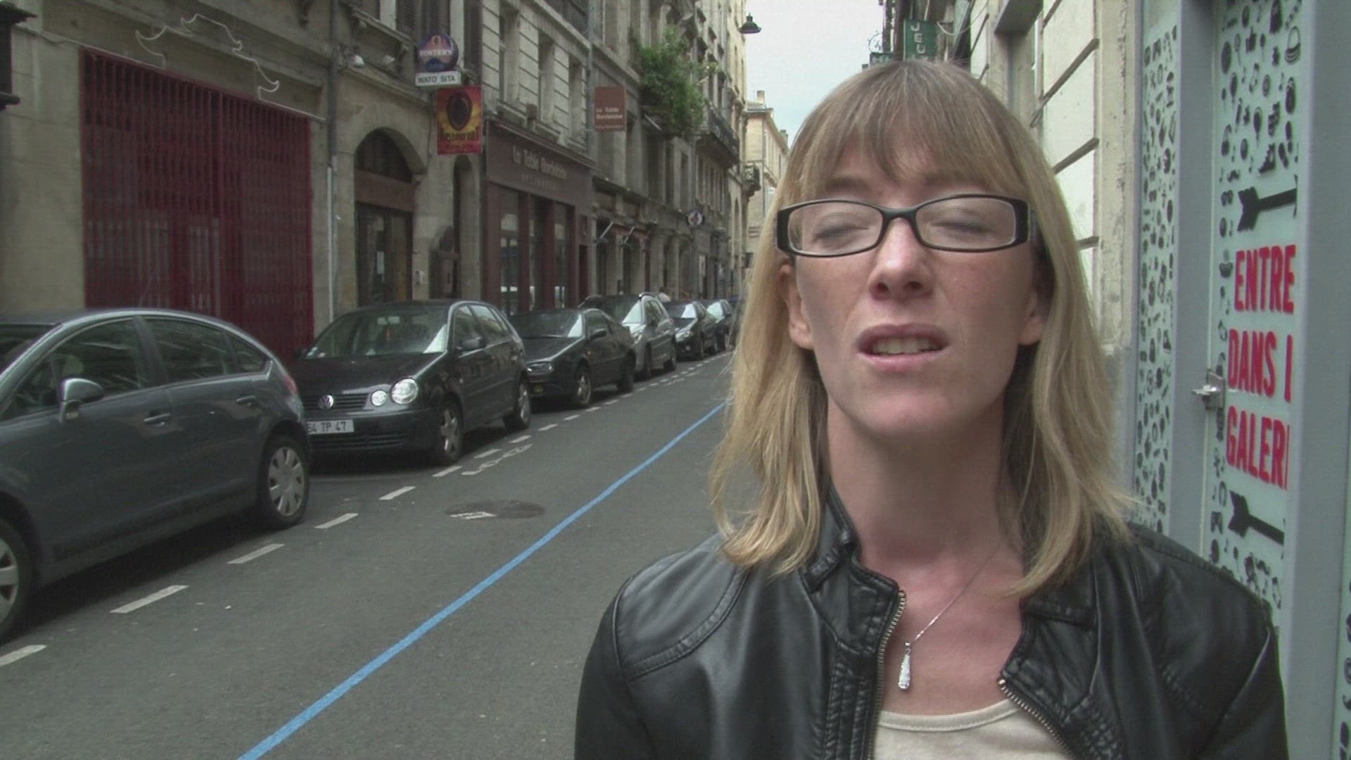 PARIS, FRANCE – SEPTEMBER 2016 : Video shot of street performer lady making funny faces at night