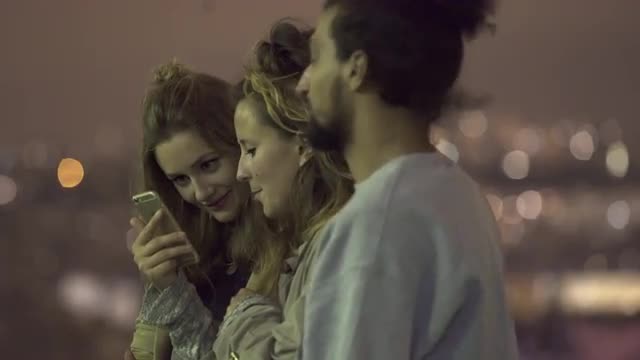 Video shot of people looking at smartphone at night