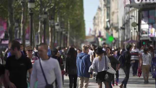 Video shot of people walking in central Paris on a beautiful day