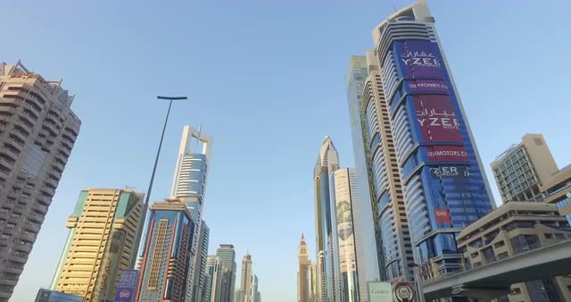 DUBAI, UAE – MARCH 2016 : Video shot from car on a sunny day with skyline and traffic in view