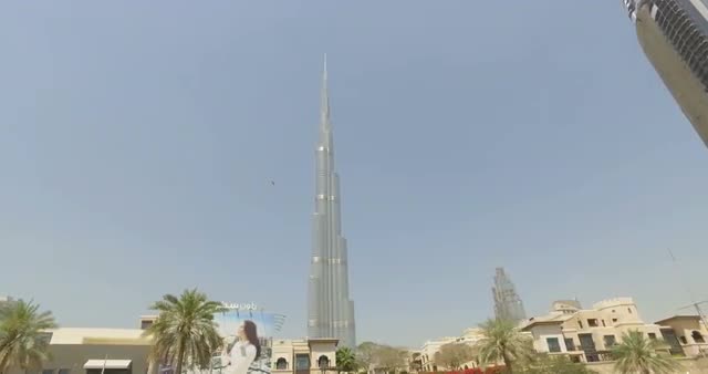 Video shot from a car on a sunny day with traffic and Burj Khalifa in view
