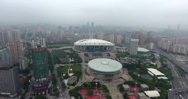 SHANGHAI, CHINA – JUNE 2016 : Aerial shot over Shanghai Stadium during daytime