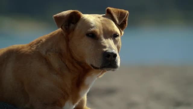 > Dog walking at beach slowmotion