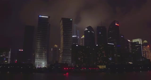 Video shot on Huangpu River of central Shanghai skyline view at night