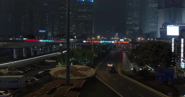 SHANGHAI, CHINA – JUNE 2016 : Video shot in central Shanghai at night with view of highway traffic and tall buildings