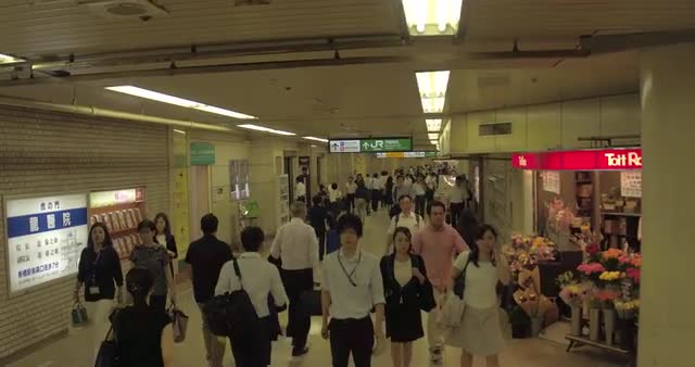 TOKYO, JAPAN – JUNE 2016 : Video shot of subway station interior with people in view