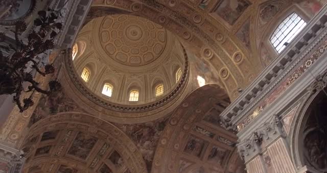 Video shot of Church of Gesù Nuovo interior on a sunny day with ceiling