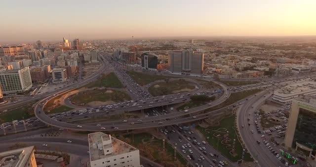 Aerial footage of traffic in central Riyadh, Saudi Arabia