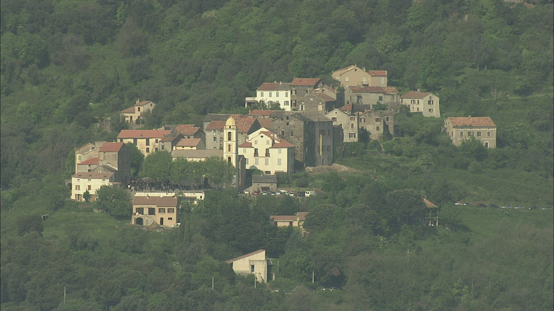 Aerial shot of Sartene cityscape on a sunny day with amazing landscape
