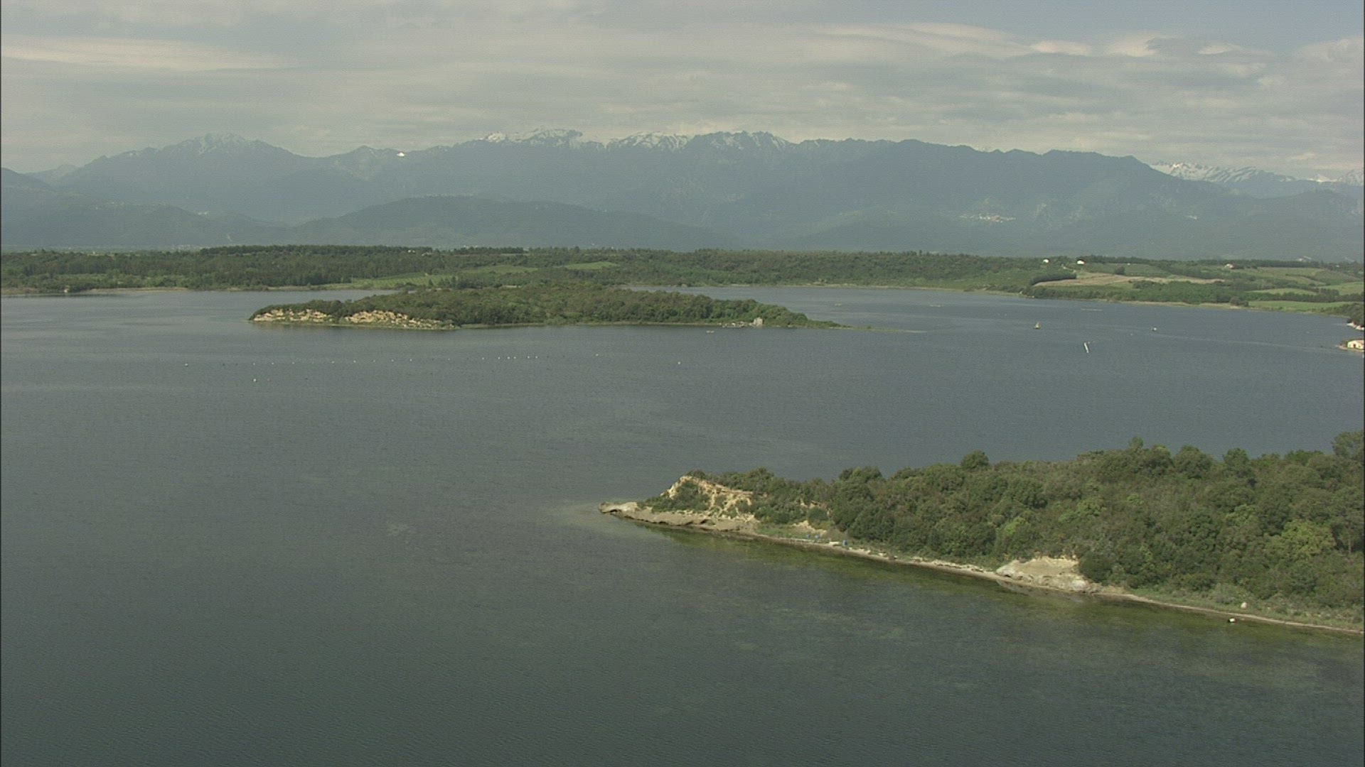 > Aerial shot of Sartene cityscape on a sunny day with amazing landscape