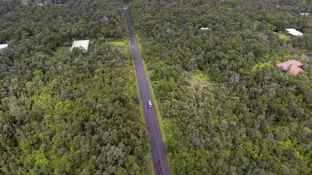 > Wide Aerial View of a Van Driving in Hawaii 1