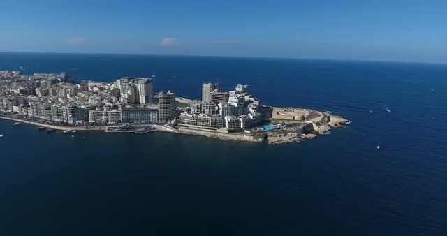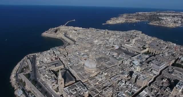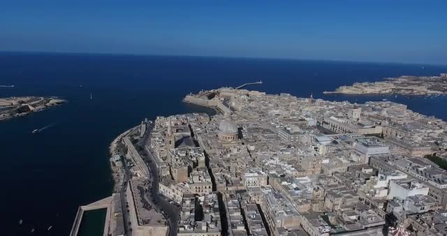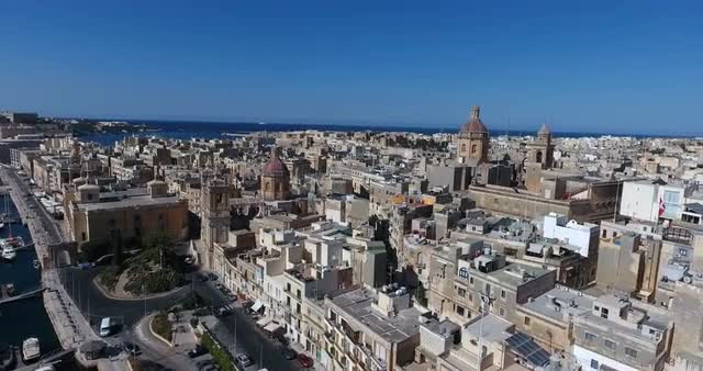 MALTA – AUGUST 2016 : Aerial shot of ancient ruined area on a sunny day with cityscape and landscape in view