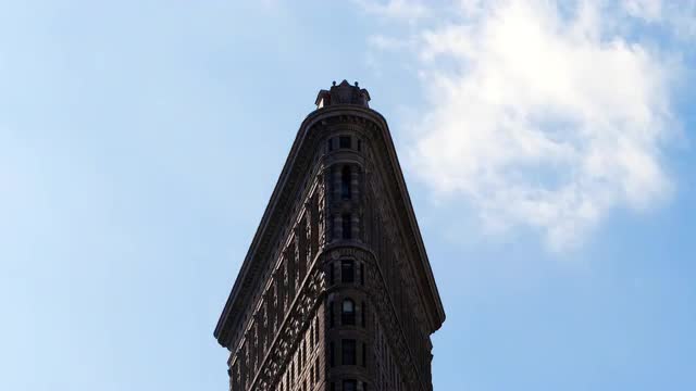 Time lapse of clouds moving by the Flatiron Building in New York City.