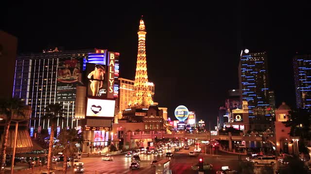 Timelapse over the strip from Eiffel Tower at night