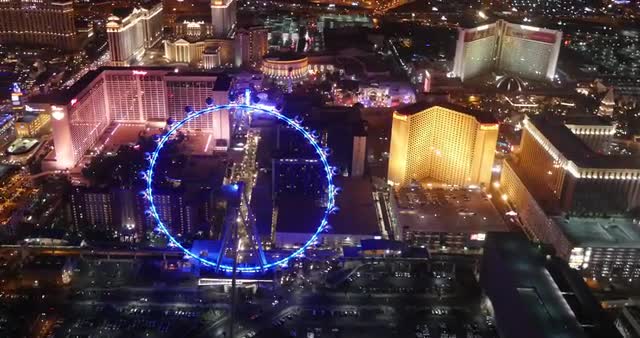 Las Vegas,Nevada,USA - November 2014: Aerial view over ferris wheel at night