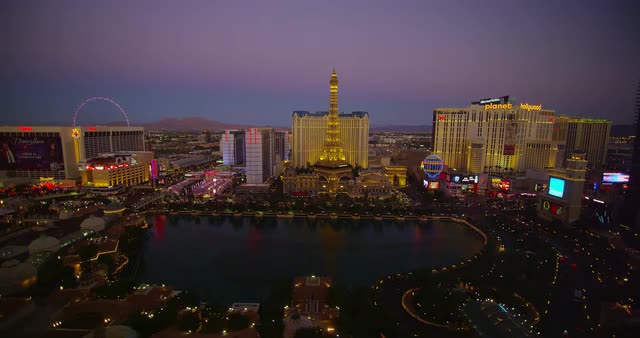 40038 - Illuminated view Paris Hotel, Las Vegas Strip, USA, Time Lapse