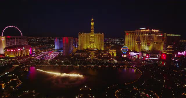 549646 - Las Vegas Nevada Bellagio Fountains at Night with Bright Lights of Hotels on The Strip