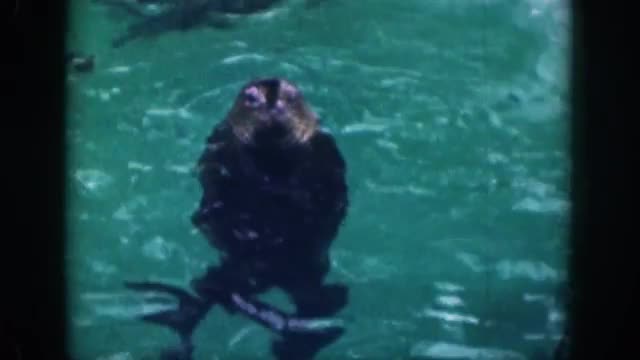 665791 - 1939: sea otters hanging out on a dock by the water WYOMING