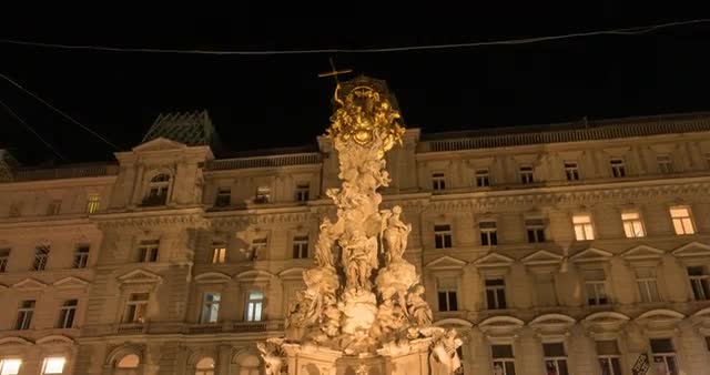 VIENNA, AUSTRIA – DECEMBER 2015 : Moving timelapse / hyperlapse of Pestsaule statue at night with people in view