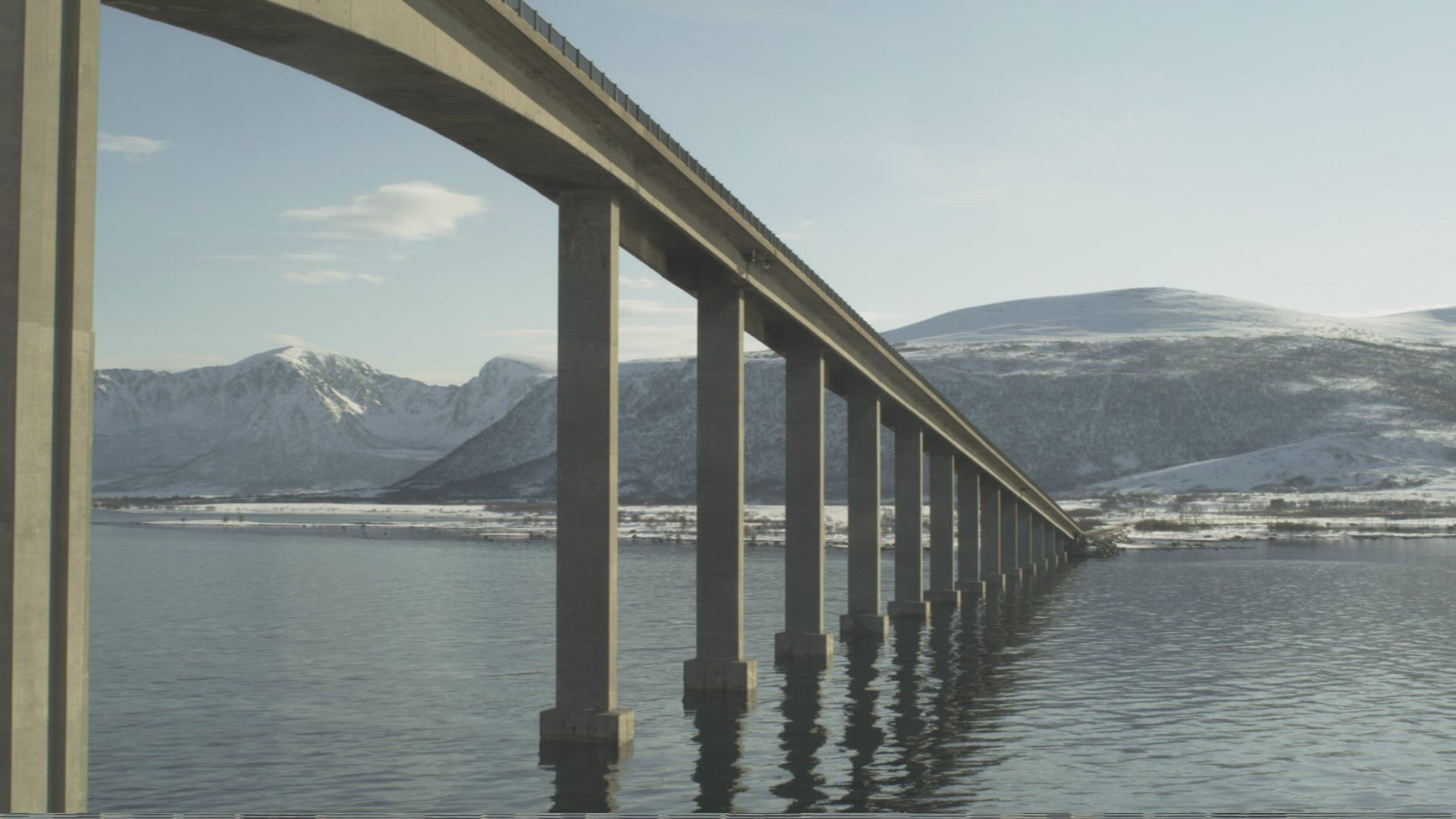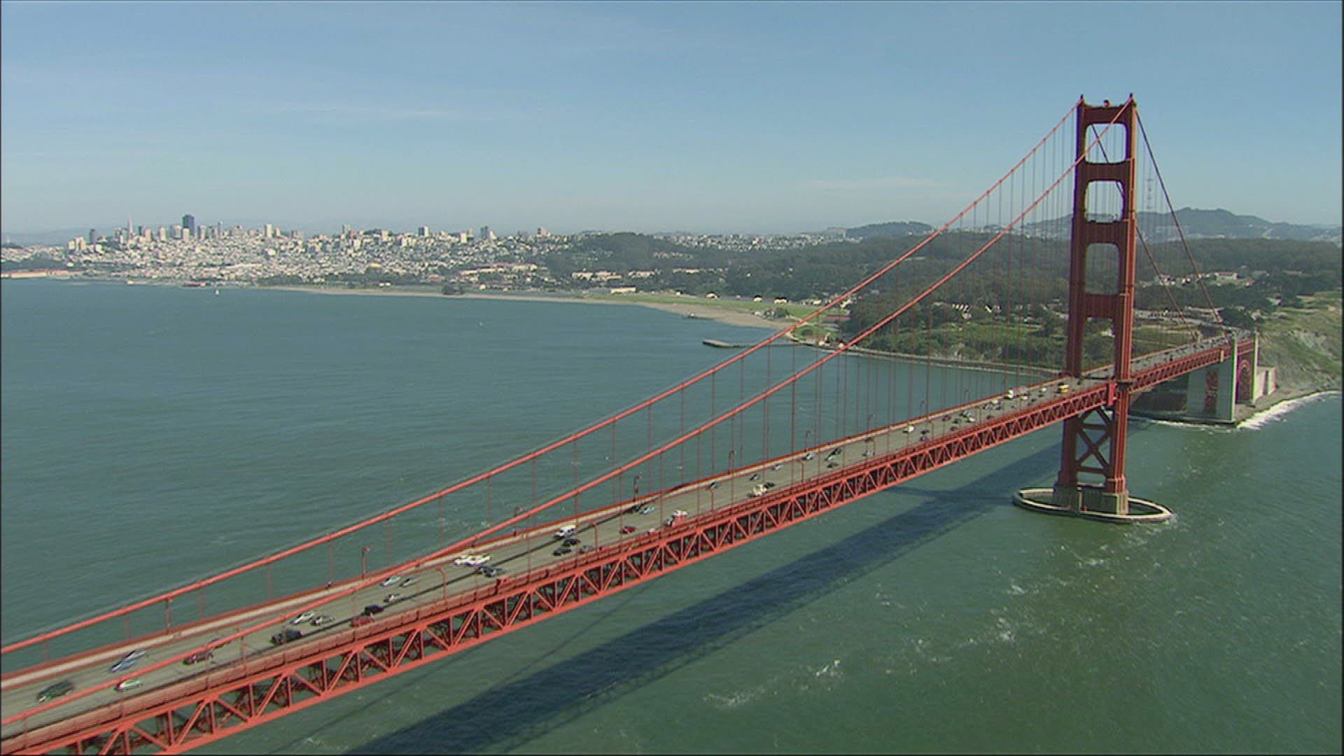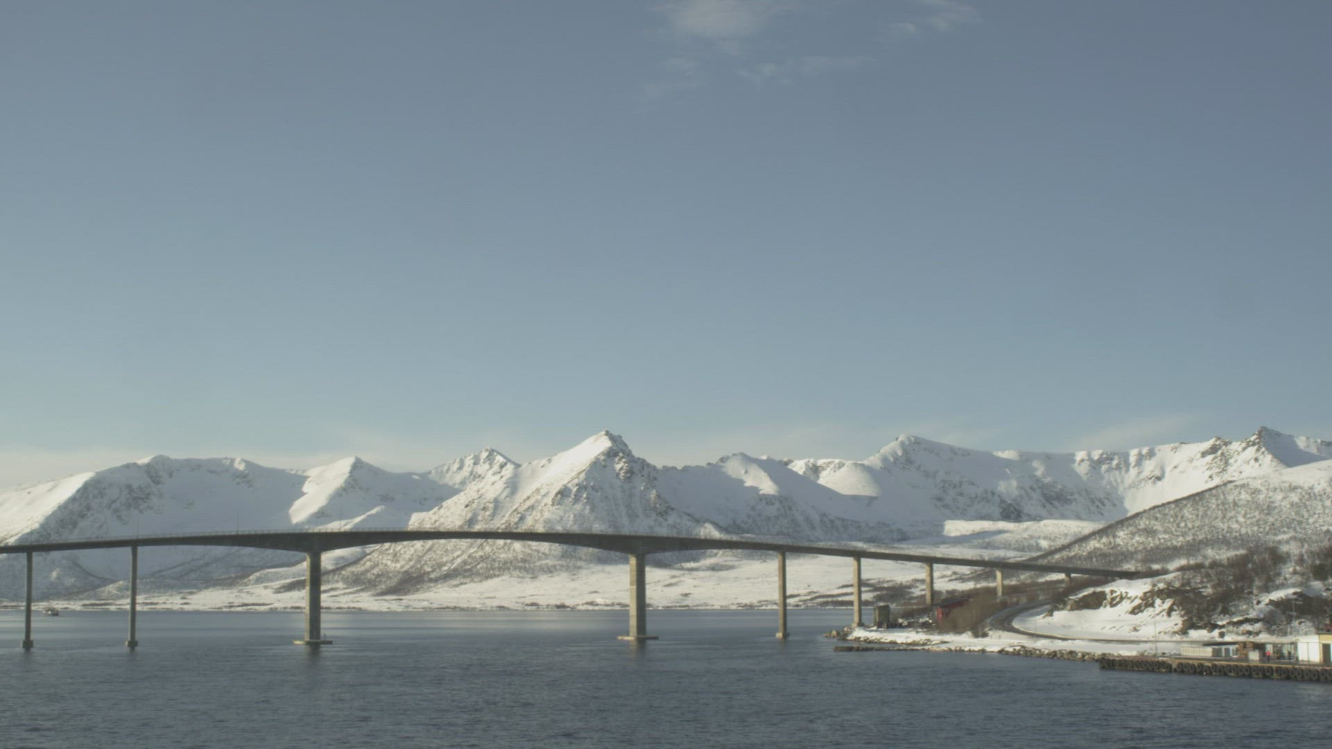 > Wide Helicopter Angle Filming Washington Sate Famous Bridge Across Puget Sound