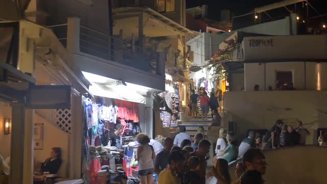 SANTORINI, GREECE – AUGUST 2016 : Aerial shot over Santorini cityscape at sunset with beautiful landscape and cliff in view